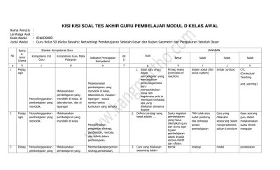 Kisi kisi soal tes akhir guru pembelajar modul c kelas awal nama penulis :